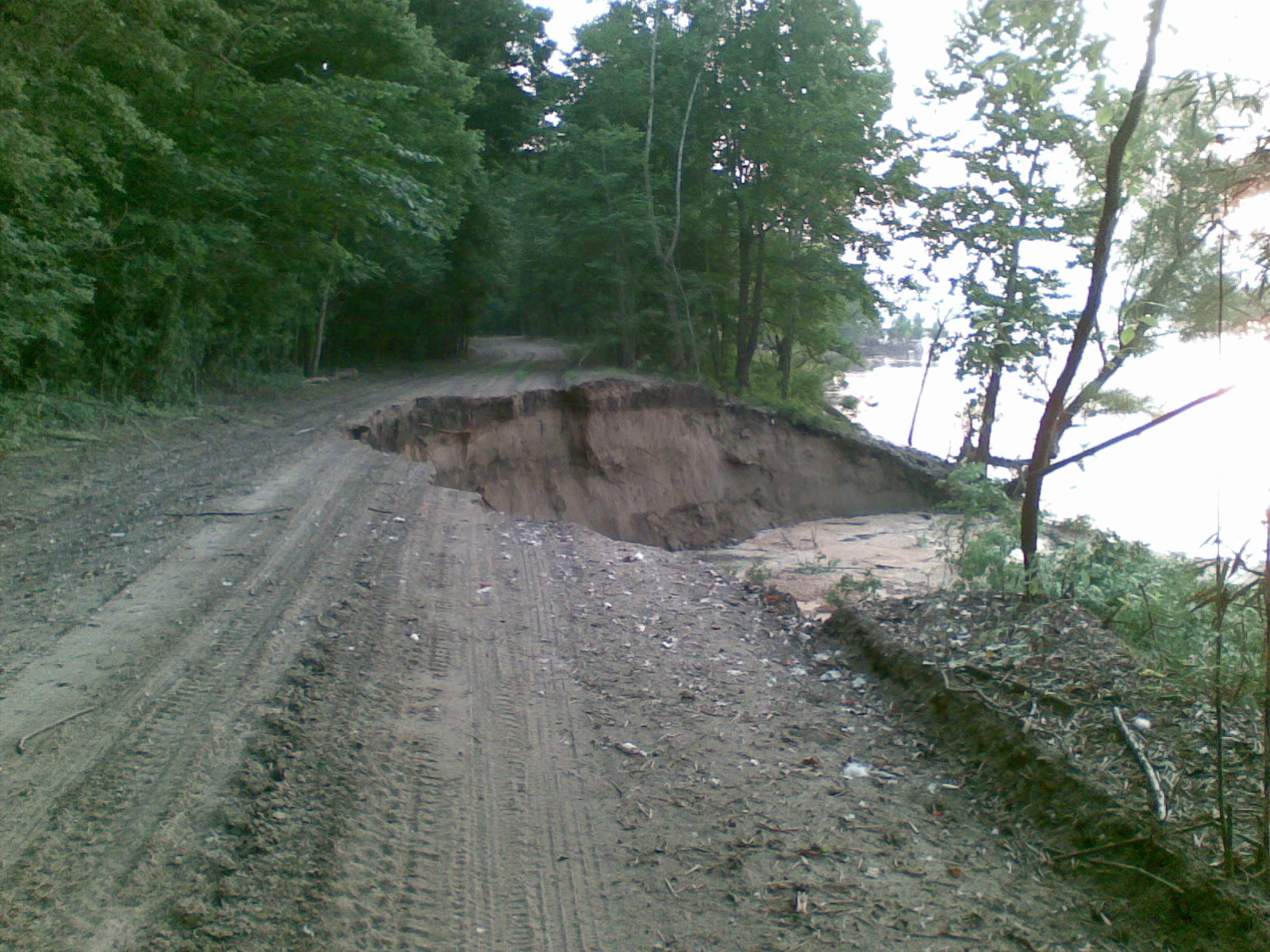 As I went for a late afternoon ride along the river at Catfish Point, I discovered this cave in. The Old Man River was showing his strength and probably some of the results of this years flood. Thirty minutes later the whole road was gone and more was falling in by the minute. No telling how big the cave in is by now. I’ll update next time I go.