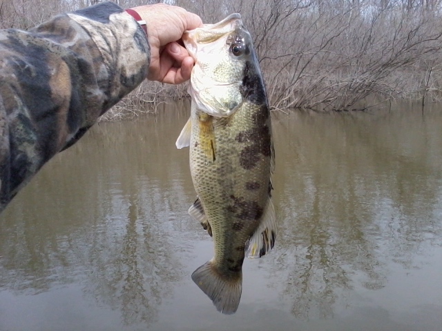 I took a break from turkey hunting Saturday afternoon to go to the private hole. The wind was much too high to turkey hunt and I didn’t want to waste such a beautiful afternoon. At 1:30 I made the first cast using a small swimbait on a jighead. The trees were dropping both sycamore seeds and the tassels oak trees distribute their pollen with. All of this blew over to one side of the hole and prevented me from using the swimbait effectively so I put on a Rex spoon. On about the fourth cast one blasted the spoon. There is no way to adequately describe the strike other than a blast. Surprisingly, I hesitated before setting the hook and when I did the fish came out of the water two feet in an astounding jump. Two more good jumps and I had the 4-8 FOD by the bottom jaw. Most of the fish Saturday put on an aerial display for some reason. One of the better ones a little later slung the spoon up in the air and escaped. All I could do was laugh. After I ran out of the flotsam, I had to change baits. The fish were not in the same two places they have been hanging out. I put on a spinnerbait to search and after missing one on it, threw in a worm. One bit and was caught, and another and another until I caught 6 in this nondescript spot, some as deep as 10 feet. When I arrived, you could tell the bite was really on and during the afternoon it slackened pretty quickly until the worm was the bait to use. It’s funny how your mind takes pictures. I can still see the 4 pounder that threw the spoon back. It was a fun afternoon that ended up with 16 bass a goo and of course a grinner. Another thing of interest I saw was two large turtles with shells 1 1/2 to 2 feet in diameter close to one another up against the bank. I suspect there was mating activity going on.