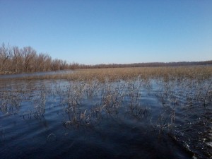 I went to Lake Ferguson this morning and played hooky from church, which was probably my downfall. The gauge was at 29.8 feet and the starting water temperature was 46. Not to worry I thought, we caught them in Lake Chicot the other day when the water was the same temperature. The last time I was on Ferguson I caught a fish in some flooded cockleburs and this morning I found a large spot just full of them. The water was beautiful with 4 foot visibility. Unfortunately the fish were somewhere else. Not to worry again, I’ll just go to the 87 pound treeline. Here’s what I found there.