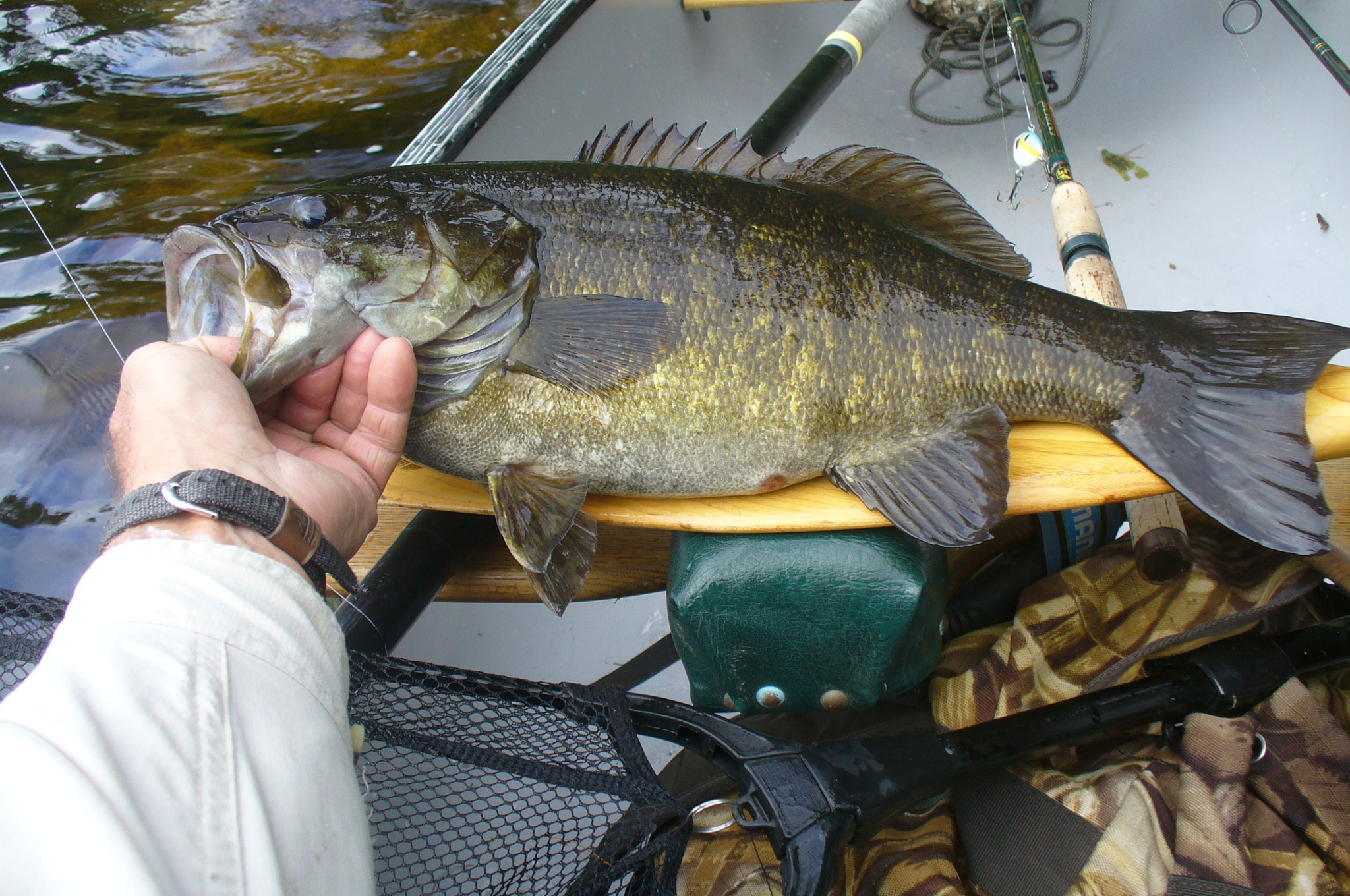 The last photo is of a gorgeous smallmouth. He has it laid out on a paddle which is a great way to photo a fish when you are by yourself. I think I’ll copy that idea if I ever catch another one worth taking a picture of.